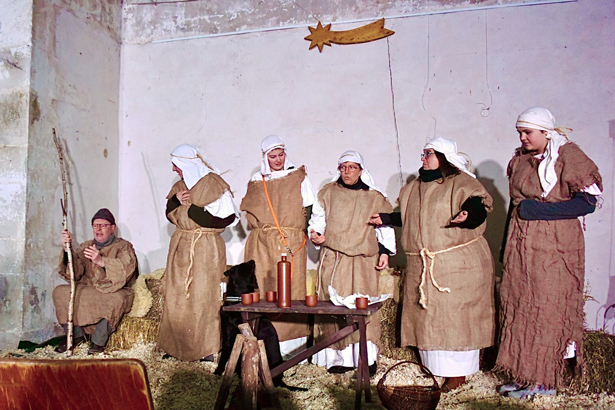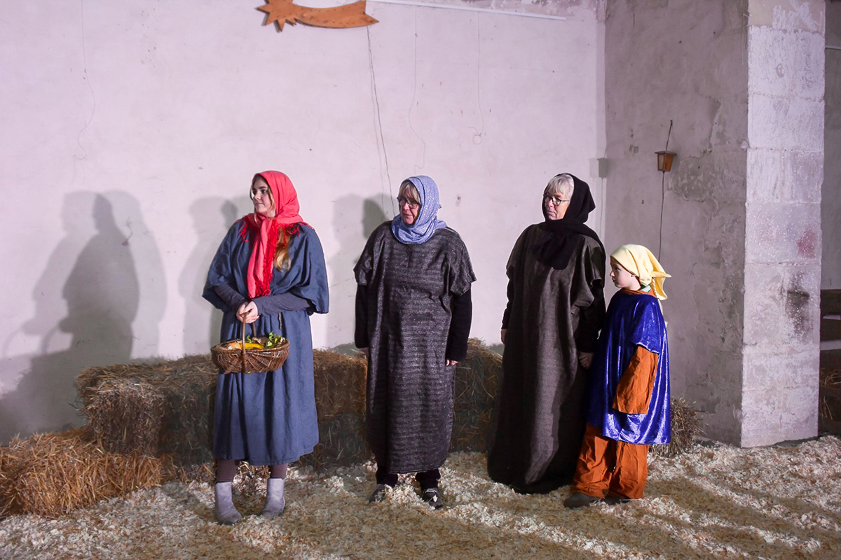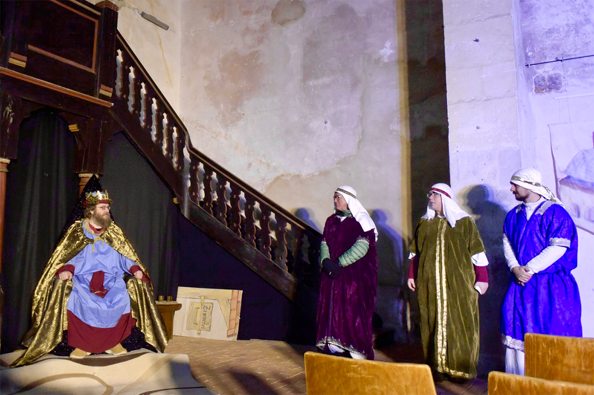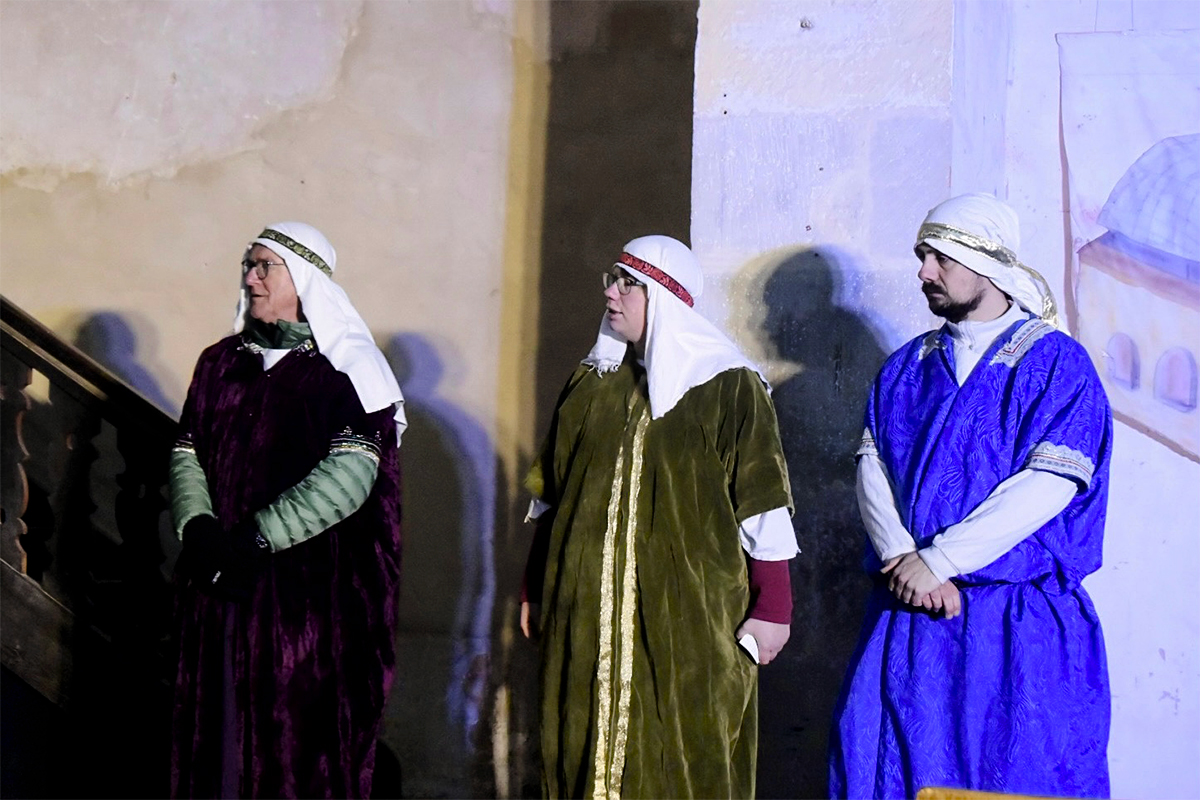 Josef (Martin Schiepanski), Maria (Joy-Leonie Nebe) mit ihrem Esel (Piko) erfuhren die harten Abweisungen der Wirtinnen und erlebten dann im Kontrast dazu die freundliche Einladung in einen Stall in Bethlehem. Ein starker König Herodes (Sven Heinzel) mit seinen zwei Hauptmännern (Arlina Flügel und Aliyah Böhlke), die heiligen drei Könige, die Hirten und die anderen Schauspieler überzeugten die Zuschauerinnen und Zuschauer mit Erfahrung und manchmal auch mit notwendigen Improvisationen.