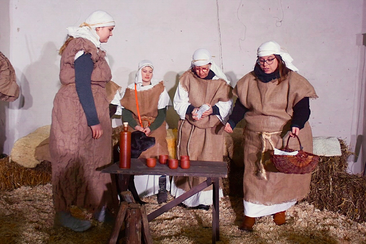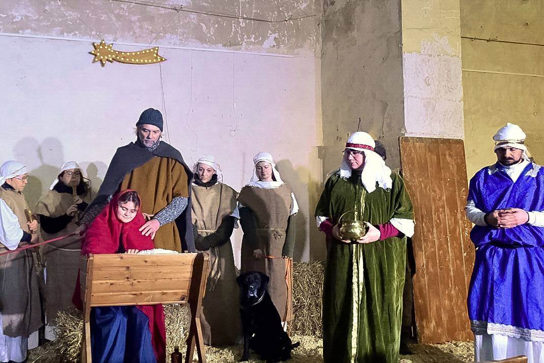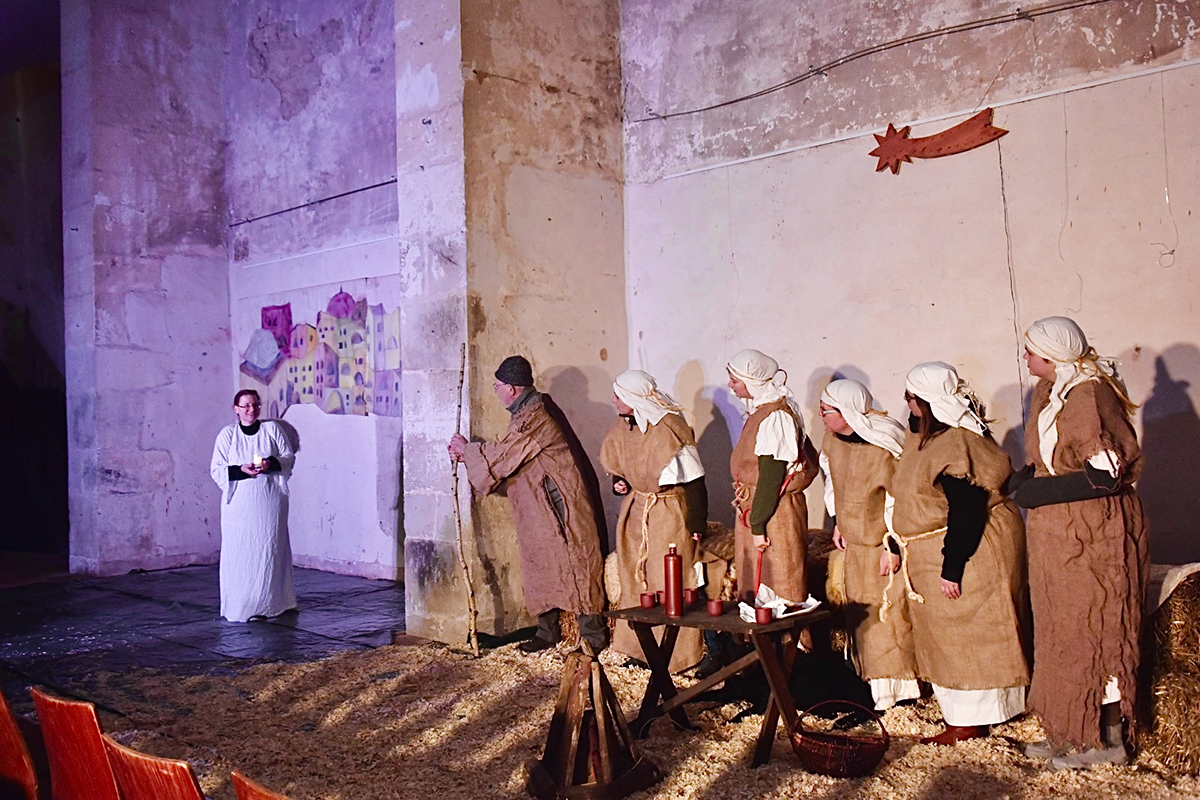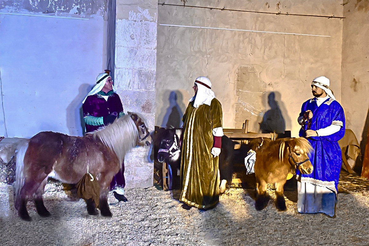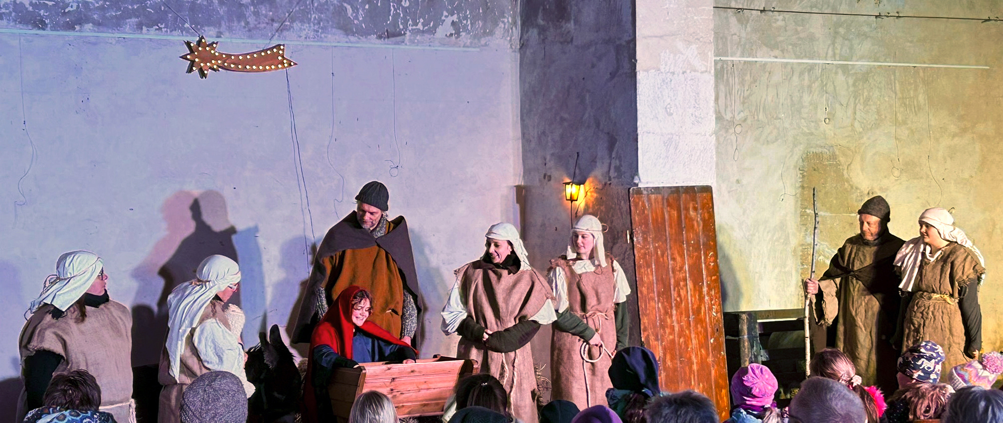 Josef (Martin Schiepanski), Maria (Joy-Leonie Nebe) mit ihrem Esel (Piko) erfuhren die harten Abweisungen der Wirtinnen und erlebten dann im Kontrast dazu die freundliche Einladung in einen Stall in Bethlehem. Ein starker König Herodes (Sven Heinzel) mit seinen zwei Hauptmännern (Arlina Flügel und Aliyah Böhlke), die heiligen drei Könige, die Hirten und die anderen Schauspieler überzeugten die Zuschauerinnen und Zuschauer mit Erfahrung und manchmal auch mit notwendigen Improvisationen.