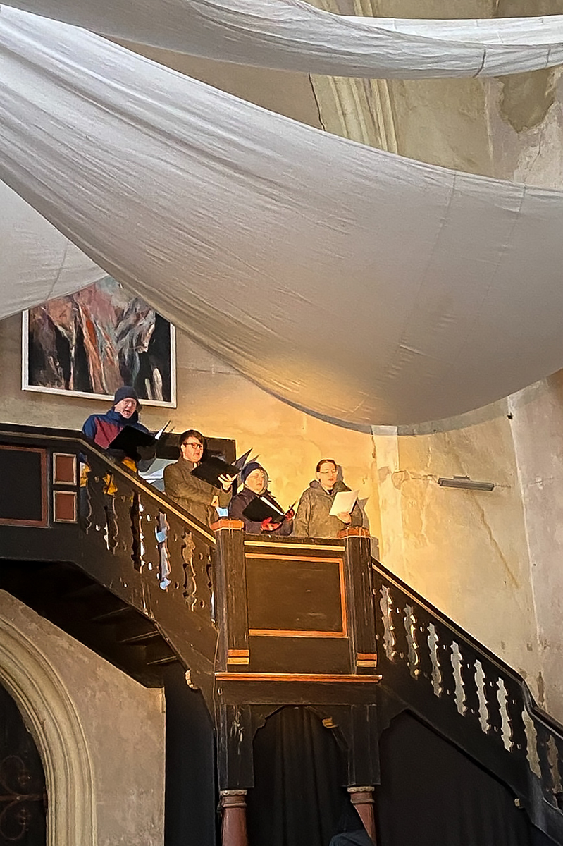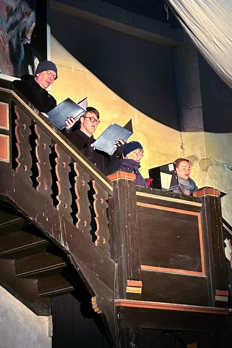 Pastor a.D. Eberhard Jäger sprach am Ende des Stücks den Segen für alle, die sich in diesen jahrhundertealten Mauern zusammengefunden hatten und zum Abschied sangen alle gemeinsam das Lied „O du Fröhliche“.